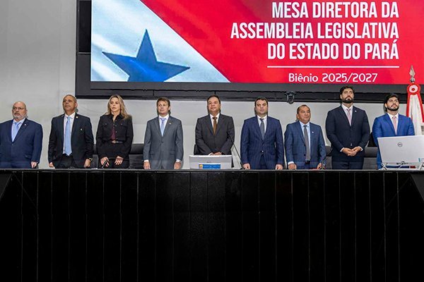 Conforme determina o Regimento Interno da Assembleia Legislativa do Pará (Alepa), a Mesa Diretora eleita para o biênio 2025-2027 foi empossada neste primeiro dia do mês de fevereiro. A cerimônia ocorreu no plenário Newton Miranda, no Palácio Cabanagem, no final da manhã deste sábado. A eleição dos responsáveis pela direção dos trabalhos legislativos e dos serviços administrativos da Alepa ocorreu no dia 17 de dezembro, e reconduziu o deputado Chicão (MDB) à presidência.